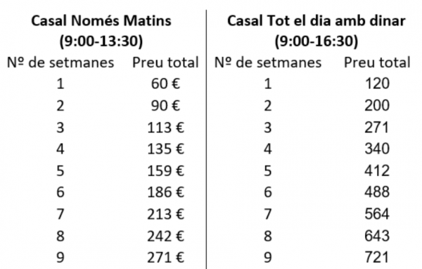Disponibilitat per setmanes del Casal d'Estiu de Cortariu